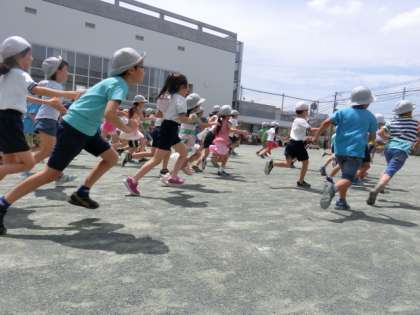 今日の児童集会では、集会委員さんが「羊さんのお引っ越し」ゲームを企画してくれました。校庭の一カ所に集まり、オオカミに捕まらないよう、反対側までダッシュします。