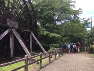皆、元気に日光に着きました。ここまで、バスに酔った子はゼロ。杉並木公園の中の大きな水車の横を通り、古民家の広場でお弁当を食べました。予定では、だいや川公園のお弁当でしたが、暑いので、日陰の多い所にしました。なんと、アリが怖くて立って食べる子がいてビックリ。とてもよいお天気で、景色も最高でしたが、暑すぎでした。ここまでで、小さな水筒の中身は空っぽになりました。