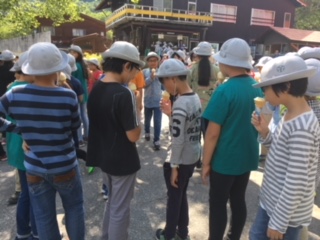 光徳牧場でアイスを食べて、宿舎へ。アイスは、甘くて冷たくて、とても美味しいと嬉しそう。お風呂に入って、おみやげタイム。楽しい時間を過ごしました。最後に、買ったものを入れたスーパー袋の口を、蝶々結びにするのに、大苦戦の子が、結構いました。