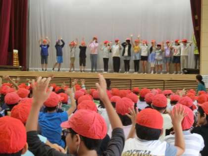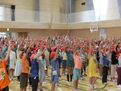 負けたら帽子が赤から白に代わり、最後は無帽になりますが、ゲームには参加できます。みんな大はしゃぎで、最後までゲームを楽しむことができました。