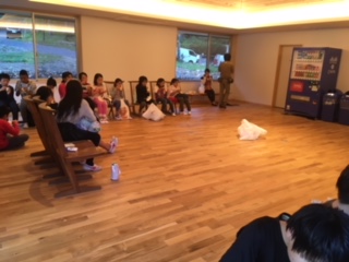 お風呂に入って、アイスクリームを食べました。そして、夕食を食べましたが、すみません、写真が撮れていませんでした。今日の夜のプログラムは、ナイトハイクが熊の出没でできず、間伐材を使った箸づくりです。どんな箸ができたでしょうか?お楽しみに。