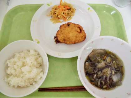 献立 ご飯、いかメンチ、切干大根のはりはり漬け、八戸せんべい汁、牛乳