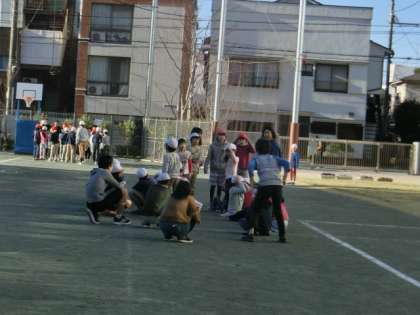 6年生の支援を受けながら、5年生が遊びの先頭に立ちました。