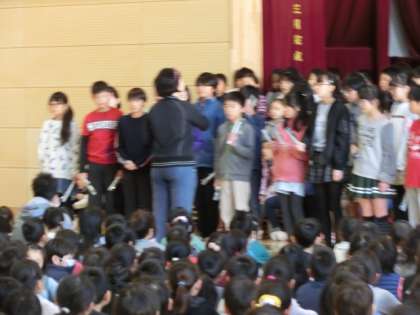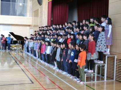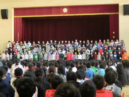 最後は全校のみんなで楽しく「ジングルベル」を歌いました。みんなとっても楽しそうです。