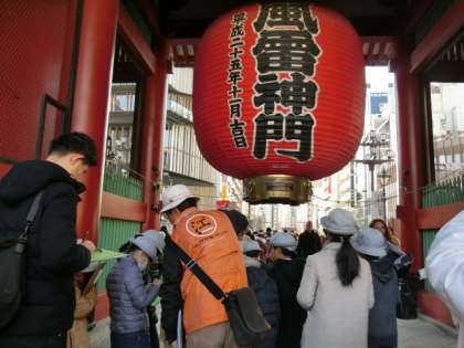 ボランティアガイドの方の案内で、グループごとに浅草寺周辺を散策。