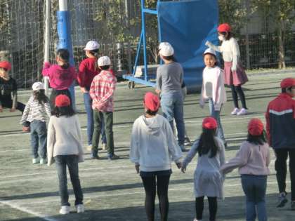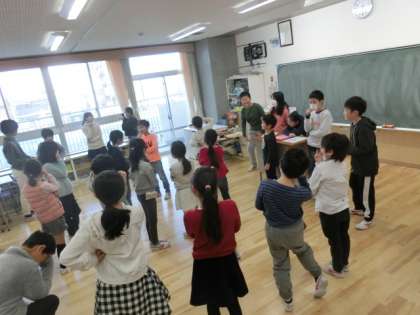 前回に比べ、5年生たちもだいぶ落ち着いた様子で、1〜4・6年生をまとめていました。