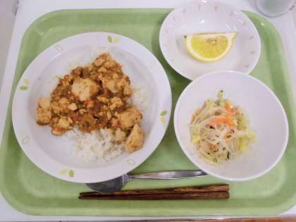 献立 麻婆ライス、春雨サラダ、はるか、牛乳