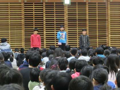 なかよし班リーダー長、サブリーダー長が、この一年の振り返りや次年度に向けた抱負などを話してくれました。
