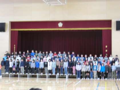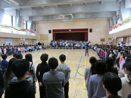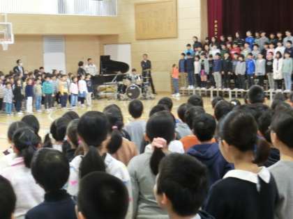 今朝の音楽集会は来週に迫った「6年生を送る会」で歌う「心から心へ」を、みんなで歌いました。