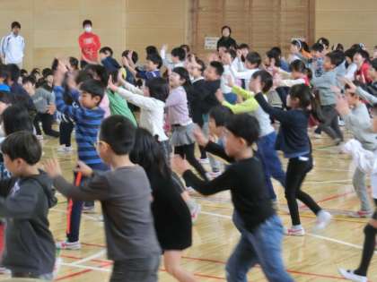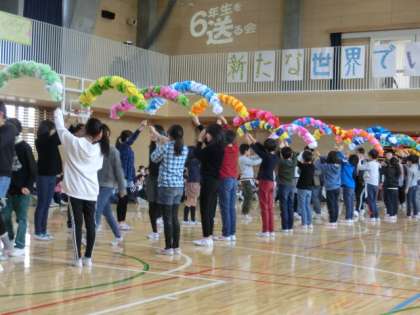 2年生は「前略、道の上より」の曲に合わせて、力強いダンスを披露。6年生たちの卒業をお祝いしました。