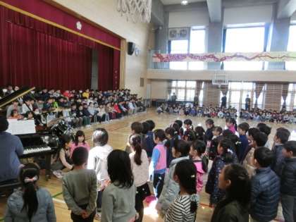 1年生は「See You」の元気でかわいい合唱と共に、入学式でお世話になったことなど感謝の気持ちを伝えました。