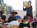 3年生はゲストティーチャーの先生に来ていただき、3日間のそろばん体験をしています。計算のやり方の他、部品の名前や算盤が語源となっている計算の用語を教えていただきました。