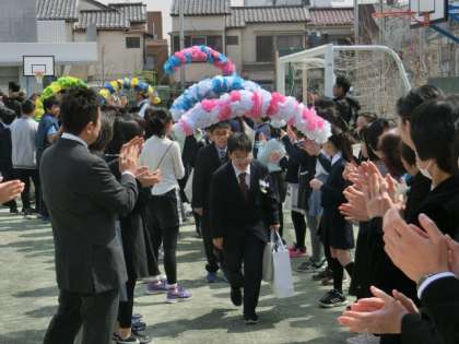 本日、卒業式が挙行され、新しい校舎から初めての卒業生96名が、元気に巣立っていきました。