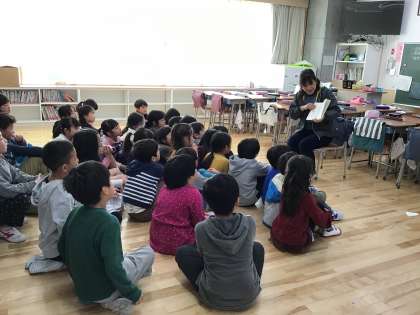モジュールの時間です。担任の先生による読み聞かせの様子です。