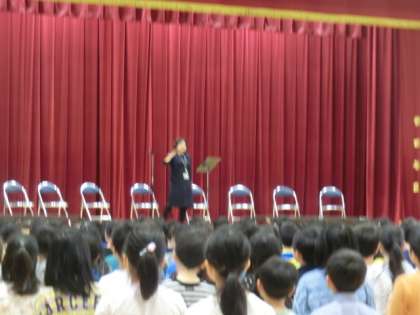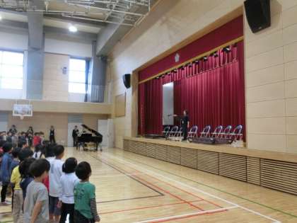 今日の音楽集会は、離任式で歌う「さようなら」と校歌を練習しました。