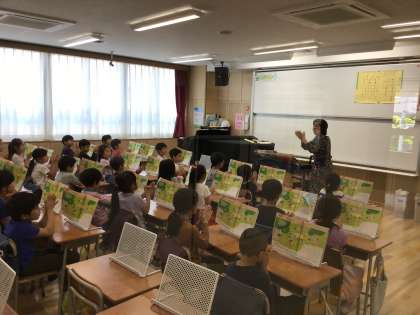 音楽では、手拍子で難しいリズムに挑戦しています。