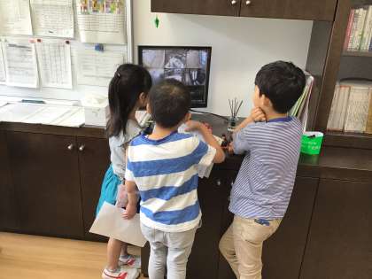 校長室にも探検隊がやってきました。防犯カメラに何が映っているのかな。