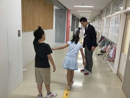 算数の時間です。体の一部を使って、長さをはかる学習をしています。