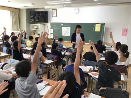 5年生 授業風景 公開日 2019/05/17 更新日 2019/05/17 できごと 算数では、単位量あたりの大きさについて学習しています。今日は、復習として都道府県の人口密度を求めています。 いいね(0)