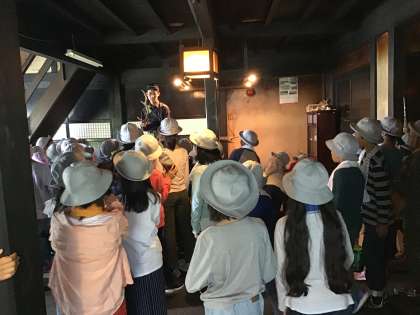 古民家の中に入れてもらいました。ガイドさんが持っているのは、鹿の角です。