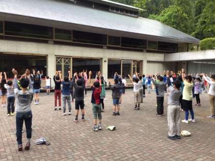 今朝もラジオ体操第一ですっきりと体を動かします。全員元気です。