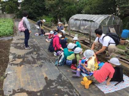 今日は、クルミ学級のみなさんと秋山農園にじゃがいも掘りに来ています。