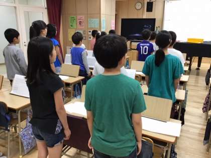 音楽の時間です。「世界に一つだけの花」を歌っています。聴いていてうれしくなってくるような歌声です。