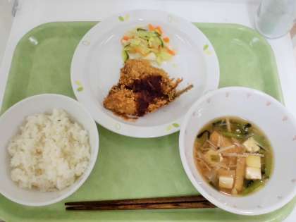 献立 ご飯、あじフライ、コーンサラダ、えのきのみそ汁、牛乳
