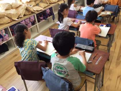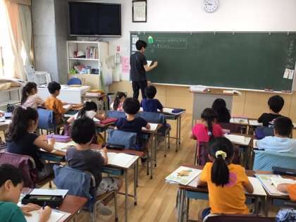 算数の時間です。1:07ー75のように、10の位が0の筆算に取り組んでいます。