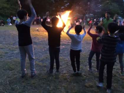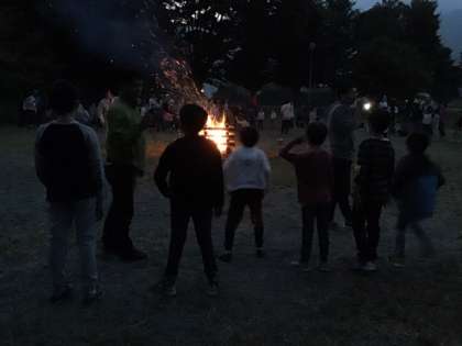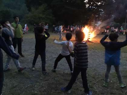 だいぶ日が暮れてきました。歌やダンスで盛り上がっています。