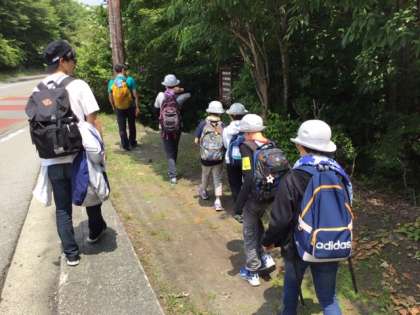 ここからはハイキングコースです。目的地まで約3キロメートルのコースになります。