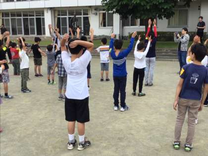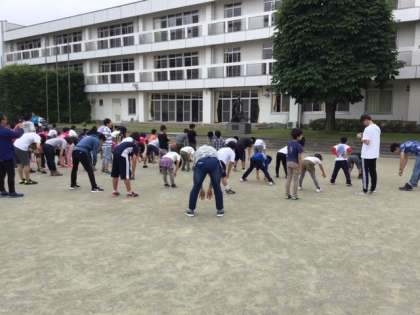 3日目の朝会です。ラジオ体操第一で、頭も体もすっきりですね。