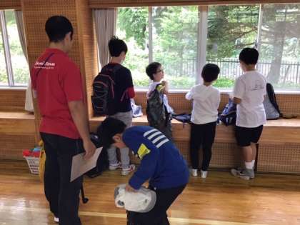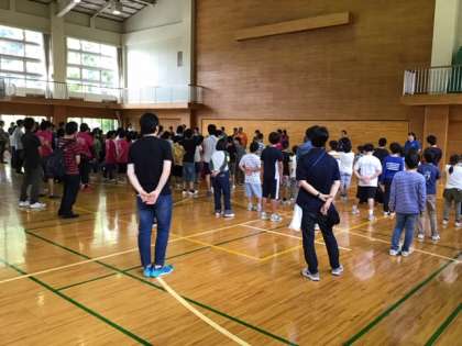 河口湖連合移動教室の閉園式が終わりました。このあとは、河口湖総合公園で遊びます。