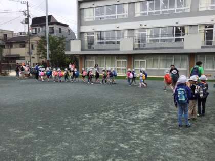 小学校生活初めての遠足です。井の頭公園を目指します。