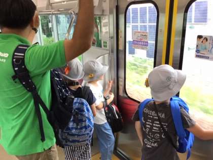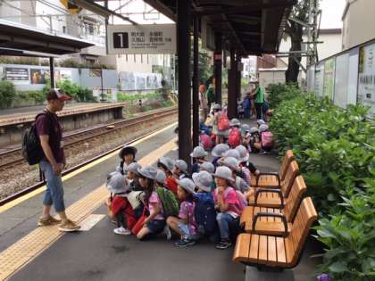 井の頭線に乗りました。マナー良く、仲良く目的地に向かいます。