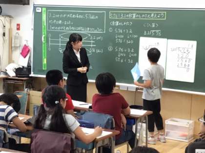 小数÷小数の計算の仕方を考えています。どのように考えたのか、全体で共有し、考えを深めていきます。