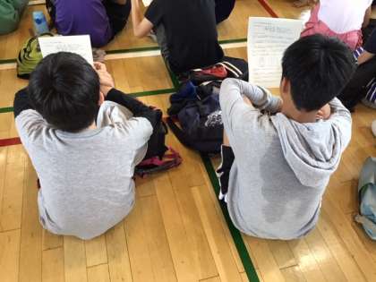 中学校の生活について、プリントを見ながら詳しく教えていただきました。