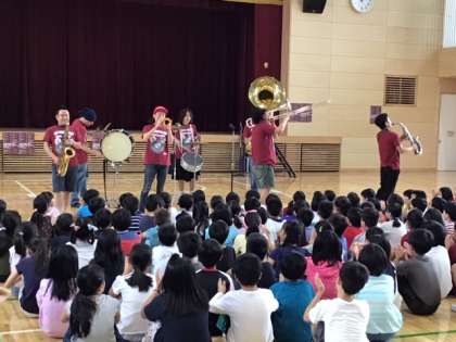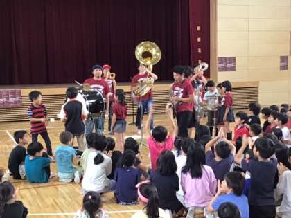 下北沢小の体育館に、BBBB(ブラック ボトム ブラス バンド)のみなさんが来てくれました。迫力ある演奏で、会場はとても盛り上がりました。