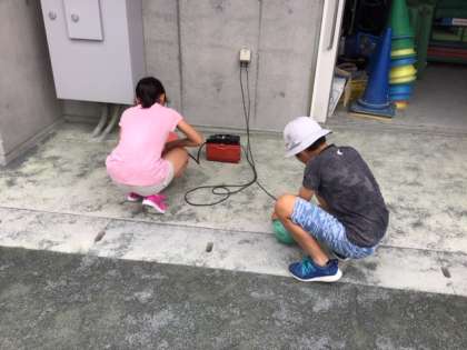 放課後や休み時間を使って、運動委員会のみなさんがボールの手入れなどをしてくれています。