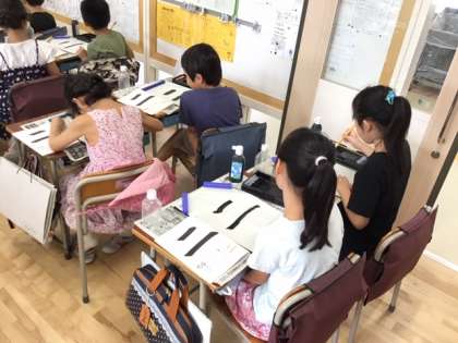 習字の時間です。3年生からは、毛筆に取り組みます。