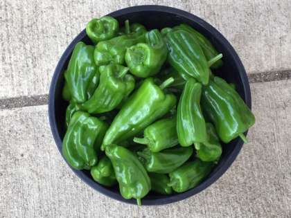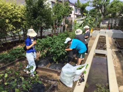 学校ボランティアのみなさんが、ピーマンやナスなどの収穫をしてくださっています。ピーマンは大豊作です。暑い中、本当にありがとうございます。