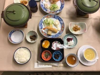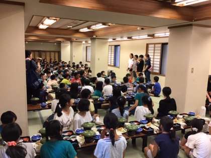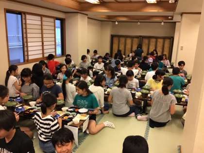 1日目の夕食の時間です。みんなで食べる食事は美味しいですね。