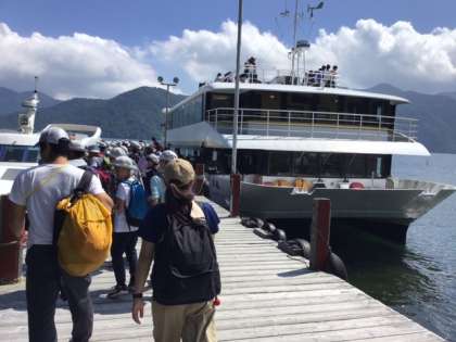 菖蒲が浜から遊覧船に乗りました。中禅寺湖の景色が素晴らしいです。