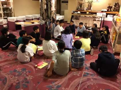 6年生 日光林間学園37 公開日 2019/08/05 更新日 2019/08/05 できごと ナイトハイクが終わり、室長会議が始まっています。ナイトハイクでの満天の星空をご覧いただけないのが残念です。素敵な夜空でした。 いいね(0)