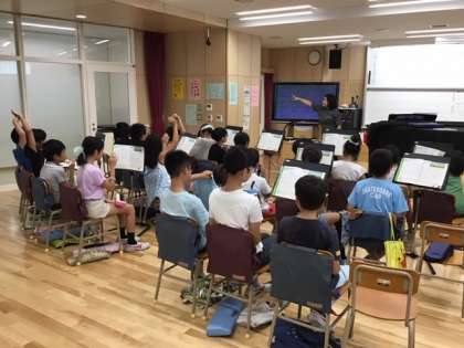 鍵盤ハーモニカで和音の響きの美しさを表現しています。