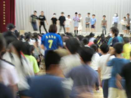 今朝は集会委員のみなさんが、「ことばもいっしょ、うごきもいっしょゲーム」を企画してくれました。