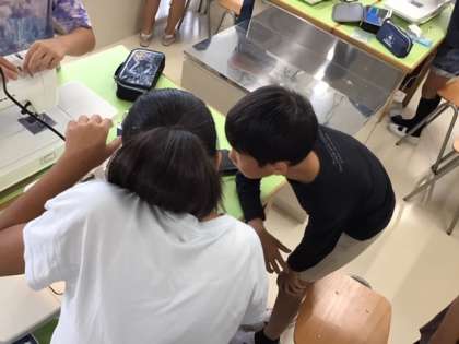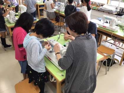 家庭科の時間です。ミシンの学習に取り組んでいます。