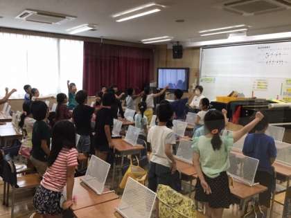 音楽の時間です。運動会の歌を元気いっぱいに歌っています。