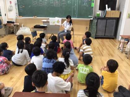 司書の方による読み聞かせです。読み聞かせは、本好きの子に育てる入り口ですね。