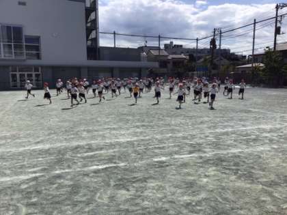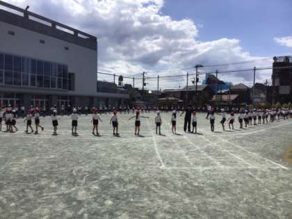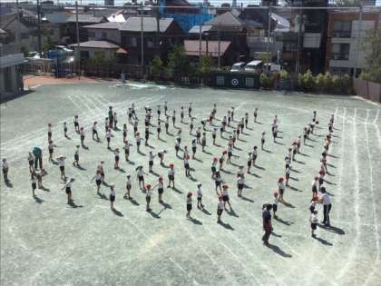 2年生は、校庭いっぱいに広がって元気に演技をします。